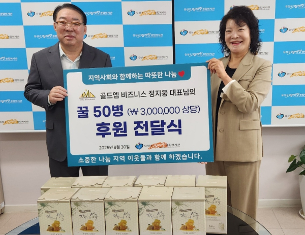 [충청뉴스 최형순 기자] 기부천사로 알려진 정지웅 ㈜골드엠비즈니스 대표가 30일 유성구 장애인종합복지관(이명순 관장)을 찾아 300만 원 상당의 벌꿀을 후원하며 지역사회에 따뜻한 감동을 선사했다.