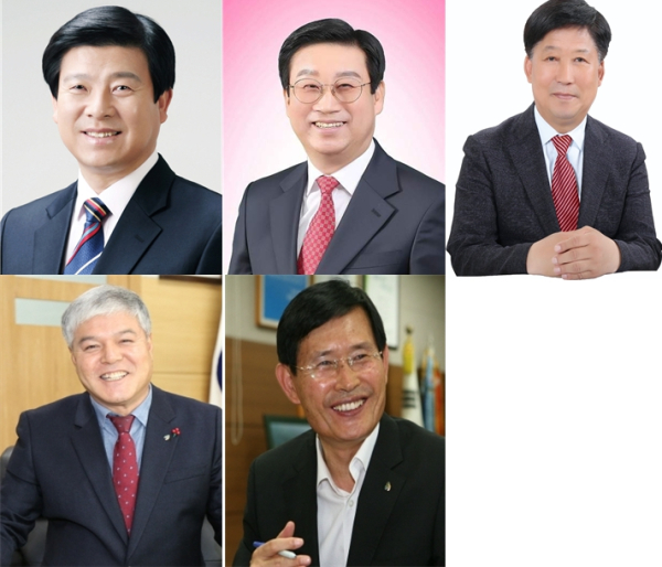 박범인 금산군수, 문경주 전 충남도 기후환경국장, 이금용 전 금산읍장, 박동철 전 금산군수, 문정우 전 금산군수