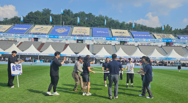 체육대회 경기 결과는 △육상 400m 계주 일반부(도고면) △사다리 릴레이(탕정면) △협동판 튕기기(송악면) △여성 승부차기(온양4동) △콩주머니 넣기(영인면)이 각각 우승을 차지했다.
