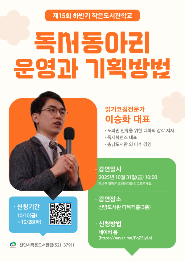 천안시 ‘제15회 하반기 작은도서관학교’ 홍보문.