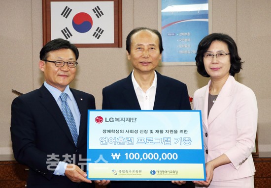대전시교육청(교육감 김신호)은 6일 오전 교육감실에서 LG복지재단으로부터 특수학급 지적장애학생들을 위한 언어훈련 프로그램(1억원 상당)을 받는 기증식을 가졌다.