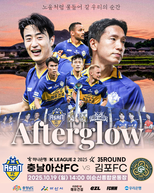 [충청뉴스 유규상 기자] 충남아산프로축구단(이하 충남아산FC)은 오는 19일 오후 2시 이순신종합운동장에서 김포FC(이하 김포)와 ‘하나은행 K리그2 2025’ 35라운드 홈경기를 치른다.