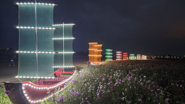 부여군은 야간 시간대에도 방문객이 코스모스 단지를 즐길 수 있도록 황포돛배에 야간조명을 더했다. 은은한 빛으로 돛배 실루엣을 비추는 조명은 강변의 고즈넉한 분위기와 어우러져 낭만적인 가을 야경을 완성하고 있다. 코스모스길 황포돛배는 10월 말까지 운영 후 철거할 예정이다.