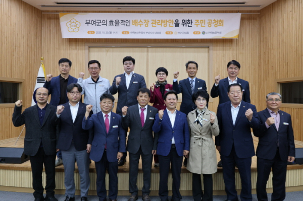 [충청뉴스 부여 = 조홍기 기자] 부여군의회(의장 김영춘)는 20일 오후 2시 한국농어촌공사 부여지사 대강당에서 「효율적인 농업용 배수장 관리 방안 연구를 위한 주민공청회」를 성황리에 개최했다고 밝혔다.