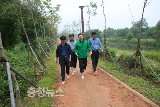 이기원 계룡시장은 12일 시민들이 자주 찾는 두계천 생태공원과 새터산공원에 조성된 황톳길에 대해 현장점검을 실시했다.