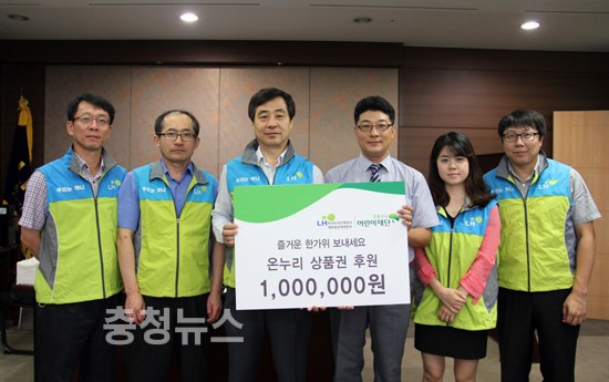 한국토지주택공사 대전충남지역본부(본부장 유영균)는 12일 초록우산 어린이재단 대전지역본부(본부장 최명옥)에서 진행하고 있는 ‘시장通 통 큰 나눔’ 캠페인에 참여, 100만원 상당의 전통시장 온누리상품권을 전달하여 대전 지역 빈곤가정에게 따뜻한 온정을 나눴다.