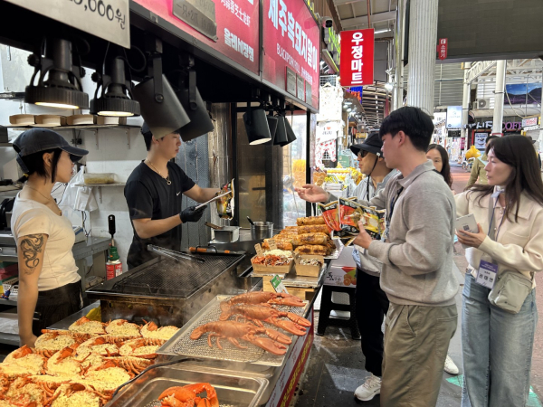 이번 캠페인은 서귀포에서 열린 연찬회에 참석한 농정과 직원 24명이 참여했으며, ‘환영해U’ 어깨띠를 착용하고 전통시장을 찾은 방문객과 상인들을 대상으로 아산의 매력을 적극 홍보했다.