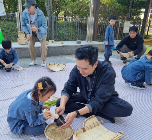 수확한 쌀은 ‘쌀 저금통’에 모아 풍요의 기쁨을 나누었으며, 이후 지게를 지고 공원을 걸으며 전통 농기구의 쓰임을 배우고, 쌀강정을 나누어 먹으며 쌀로 만든 음식의 다양성을 알아보는 시간도 가졌다.