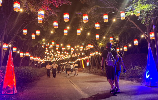 단풍나무숲길을 따라 조성된 야간 산책로는 광복80주년을 맞춰서 태극 청사초롱, 친환경 고보라이트를 활용한 무궁화길, 네온플렉스 조형물 등 은은한 조명과 국가상징물이 어우러진 공간으로, 역사와 자연이 함께 숨 쉬는 독립기념관만의 특별한 정취를 느낄 수 있다.
