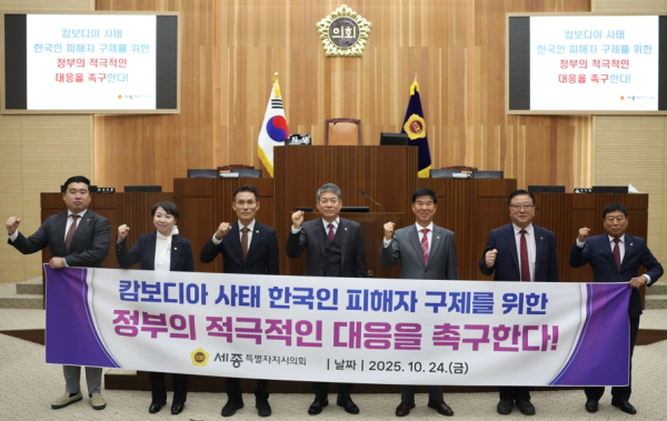 세종시의회는 이번 결의문을 통해 ▲신속한 피해자 구조 및 종합 보호 체계 구축 ▲재외공관의 24시간 긴급 대응체계 확립과 국제공조 수사 강화 ▲해외취업 사기 및 불법 알선 광고 근절을 위한 근본적 대책 수립 ▲청년 일자리 안정 및 사회 안전망 확충을 위한 구조개혁 즉시 이행 등을 정부에 촉구했다.