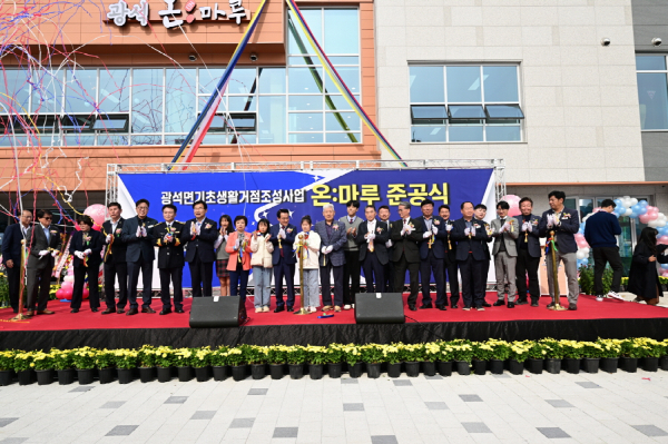논산시(시장 백성현)는 30일 백성현 논산시장을 비롯해 시·도의회 의원, 광석면 주민 등 300여 명이 참석한 가운데 ‘광석면 기초생활거점조성사업 준공식’을 열고 광석온마루의 완성을 축하했다.
