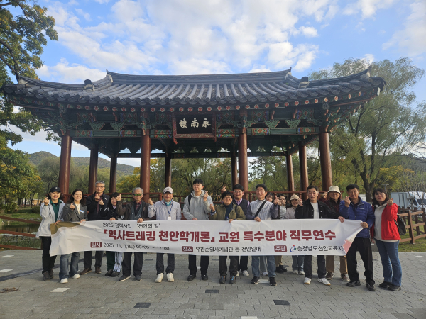 [충청뉴스 유규상 기자] 천안교육지원청(교육장 차덕환)은 11월 1일 관내 초·중등 교원을 대상으로 실시한 ‘역사트래킹 천안학개론’ 교원특수분야직무연수를 성공적으로 마무리했다.