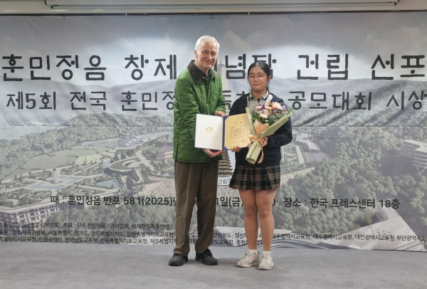 [충청뉴스 유규상 기자] 한올중학교(교장 최호명)가 (사)훈민정음기념사업회 주관 ‘전국 훈민정음 독후감 공모대회'에서 6명이 입상해 한글 사랑 교육의 명문임을 재확인했다.