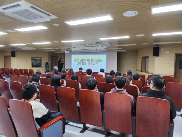 연수는 법무법인 공간의 이나연 변호사가 강사로 나서 ‘교육활동 보호 관련 법률 이해’와 ‘교육활동 침해 사례 및 유형별 대응방법’을 중심으로 진행해 교원들의 큰 호응을 얻었다.