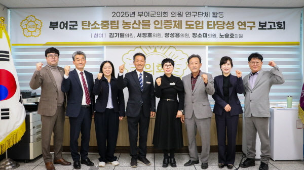 [충청뉴스 부여 = 조홍기 기자] 부여군의회(의장 김영춘)는 7일 의정협의회실에서 의원연구단체인 「탄소중립 농산물 인증제 도입 연구회」의 최종보고회를 개최했다.