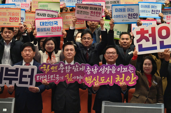 김 지사는 "천안이 인구 100만 대도시로 발전할 수 있도록 미래 모빌리티 국가산단을 케이(K)-반도체 벨트의 중심으로 만들어 나아갈 것"이라고 말했다.