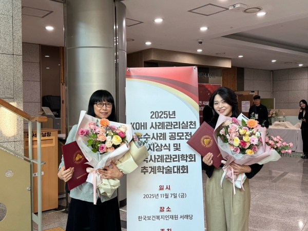 이준영·전진희 통합사례관리사는 “이번 수상은 저희가 현장에서 주민들과 함께 고민하며 찾아낸 작은 변화들이 인정받은 결과라 더욱 의미가 크다”며, “앞으로도 시민에게 실질적인 도움이 되는 사례관리를 이어 나가겠다”고 말했다.