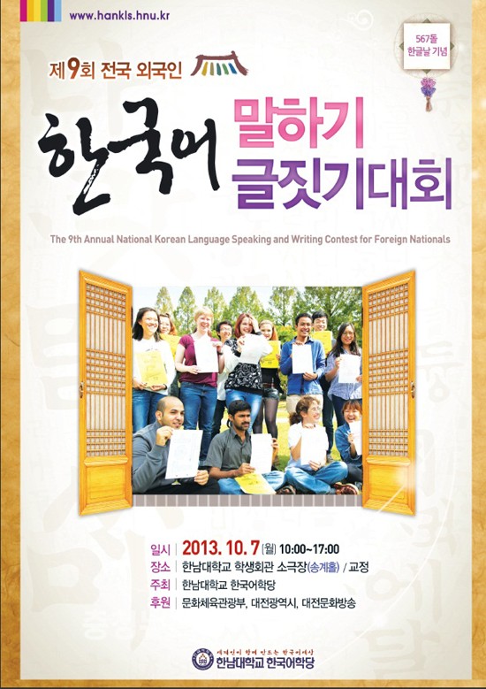대회는 한국 거주 외국인이면 누구나 참가할 수 있고 문의는 한남대 한국어학당(042-629-8148·8346)로 하면 된다.