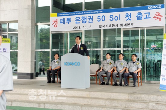 한국조폐공사(사장 윤영대, www.komsco.com)는 2일 경북 경산시 화폐본부에서 “페루 은행권 50솔 첫 출고 기념행사”를 가졌다.