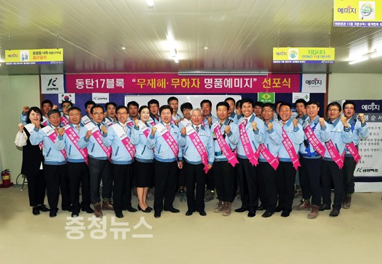수도권 첫 예미지인 동탄2신도시 17블록 예미지 신축공사 현장에서 무재해·무하자 예미지 건설을 위한 품질실천 서명식이 열렸다.