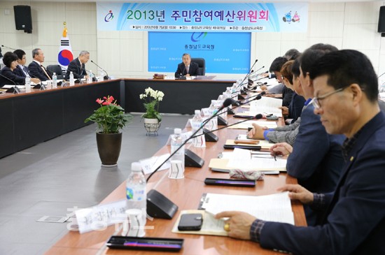 충남도교육청(교육감권한대행 부교육감 전찬환)은 7일 도교육청 제1회의실에서 주민참여예산위원 35명이 참석한 가운데 2014년도 예산 편성을 위한 주민참여예산위원회를 개최했다.