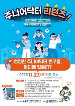 이번 모집은 2008년부터 2024년까지 주니어닥터 프로그램에 참여한 모든 이들을 대상으로 진행되며 오는 27일까지 참여할 수 있다.
