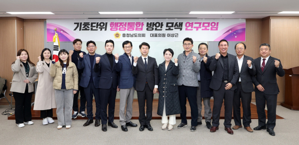 이날 회의에는 연구모임 대표인 이상근 의원(홍성1·국민의힘)을 비롯해 회원, 관계 공무원 및 연구용역 수행 연구진 등 10여 명이 참석해 인구감소와 고령화, 지방소멸 위기에 공동 대응하기 위한 기초단위 행정통합의 방향과 추진 과제를 두고 심도 있는 토론을 이어갔다.