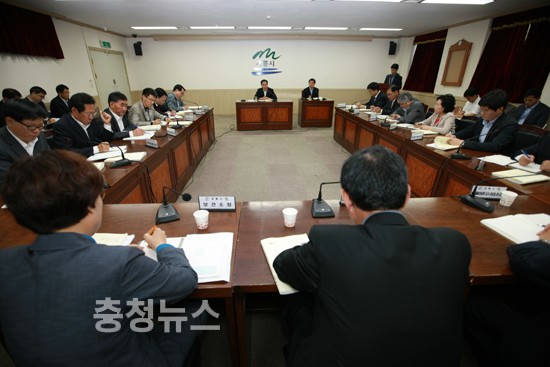 계룡시는 10일 상황실에서 이기원 시장을 비롯해 6급 이상 간부공무원 등 70여명이 참석한 가운데 2014년도 시책구상보고회를 가졌다.