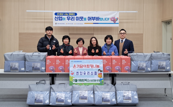 천안우리신협에서 지원하는 생필품꾸러미와 신협 사회공헌재단이 지원한 겨울이불 9채는 독거노인과 저소득가정 등에 전달할 예정이다.