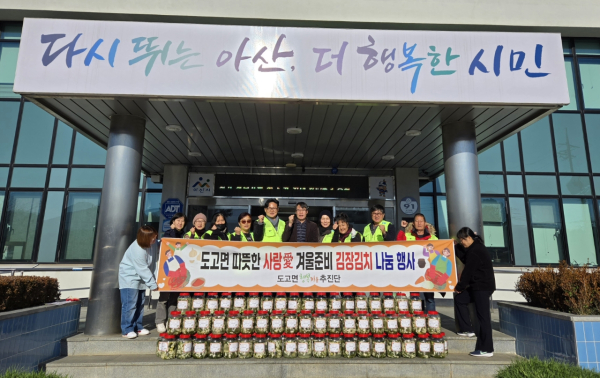 [충청뉴스 유규상 기자] 아산시 도고면 행복키움추진단(공공단장 최광락, 민간단장 정미경)은 지역 내 취약계층의 따뜻한 겨울나기를 돕기 위해 ‘사랑 愛 물김치 나눔’ 행사를 진행해 정성껏 담근 물김치 100통을 4일 관내 어르신 및 저소득 가정에 전달했다.