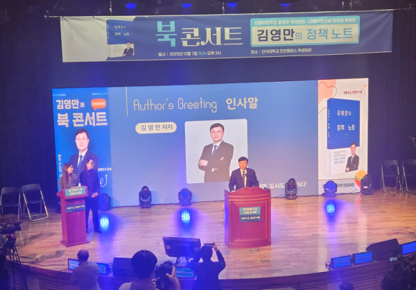 김 대표는 출판기념회 인사말을 통해, “'김영만의 정책노트'는 거창한 문구를 담은 책이 아니다. 그동안 시민들과 나누었던 이야기, 천안에서 살아가면서 느꼈던 문제들, 그리고 우리가 함께 만들어 갈 미래의 과제들을 기록했다”면서, “천안은 잠재력이 우수한 도시이지만 성장하는 속도가 시민이 기대에 미치지 못하고 있다. 인구사회구조, 지역경제 산업, 생활인프라, 건강복지, 기후환경 등은 우리가 매일 부딪치는 문제들로 함께 해결해야 할 과제들이다. 이 책에 담은 모든 과제들의 중심에는 사람 중심의 도시 안전”이라고 강조했다.