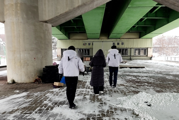 거리노숙인 보호활동을 진행하는 천안시와 천안희망쉼터