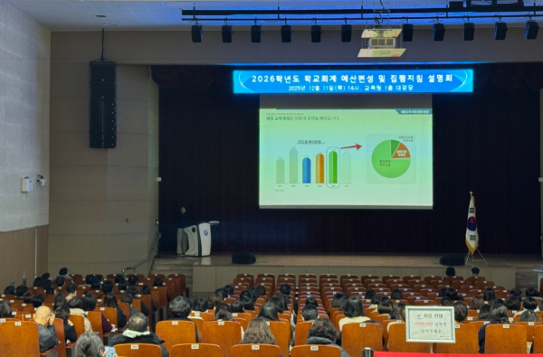 [충청뉴스 최형순 기자] 세종시교육청은 2026학년도 학교회계 예산편성 및 집행지침에 대한 학교 현장의 이해를 돕기 위해 11일, 교육원 1층 대강당에서 관내 학교 행정실장을 대상으로 설명회를 개최했다.