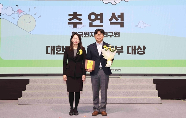 주한규 원장은 “이번 수상은 추연석 박사의 꾸준한 교육기부 활동과 연구원의 과학문화 확산 노력이 함께 인정받은 결과”라며 “앞으로도 국민과 가까이에서 소통하며 과학기술의 가치를 나누겠다”고 밝혔다.