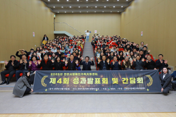 [충청뉴스 유규상 기자] 천안시장애인가족지원센터(센터장 계형국)는 지난 13일 천안축구센터에서 ‘우리가 함께 만들어가는 아름다운 세상’을 주제로 「제4회 성과발표회 및 간담회」를 성황리에 개최했다.
