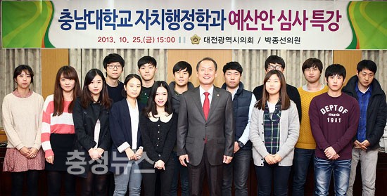 대전시의회 박종선의원(새누리당, 유성구2)은 25일 시의회에서 충남대 자치행정학과 학생들을 대상으로 예산안 심사에 관한 특별강연을 했다.