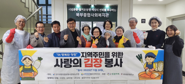 [충청뉴스 최형순 기자] 청주 북부종합사회복지관(관장 허성희)이 지역주민의 건강한 겨울나기를 돕기 위해 여러 후원 단체와 함께 '따뜻한 겨울나기 사랑의 김장김치 나눔 행사'를 성공적으로 진행했다.
