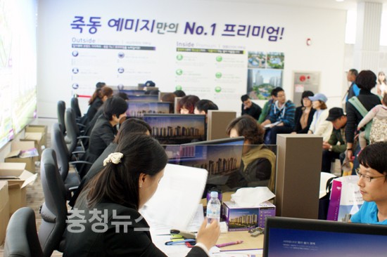 죽동 No.1블록 예미지 1순위 청약결과 31일 ▲ 74㎡ 공급세대수 57세대 중 772건 접수 - 14.3:1 ▲ 84㎡ 공급세대수 675세대 중 1,447건 접수 - 2.3:1 ▲ 101㎡ 공급세대수 219세대 중 169건 접수 - 0.8:1을 기록해 평균 청약 경쟁률 2.67:1 를 보였다.