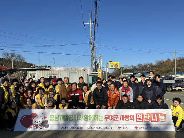 [충청뉴스 박영환 기자] 충남개발공사는 지난 22일 대한적십자사 충남지사와 함께 부여군 내 취약계층의 따뜻한 겨울나기를 돕기 위한 연탄 나눔 봉사활동을 실시했다고 밝혔다.