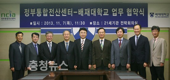 대학은 7일 오전 대학 21세기관 전략회의실에서 김영호 총장 등 보직교수들이 참석한 가운데 정부통합전산센터(센터장 김우환)와 업무협약을 체결했다. 앞으로 양 기관은 학술교양문화 프로그램을 공동 운영하는 한편 IT관련 학과 대학생들의 현장학습 등을 지원해 인재양성에 협력해 나갈 계획이다.