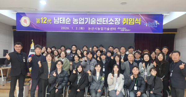 [충청뉴스 논산 = 조홍기 기자] 논산시농업기술센터(소장 남태순)는 지난 2일 전 직원과 농업인 학습단체장이 참여한 가운데 ‘제12대 소장 취임식’을 개최했다고 밝혔다.