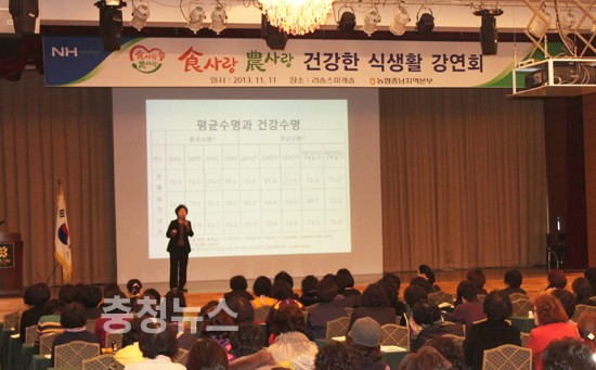 농협중앙회 충남지역본부(본부장 김병문)은 11일 예산군 덕산면 소재 리솜스파캐슬에서 충남고향주부모임 및 농가주부모임회원 3백 여명을 대상으로 올바른 식생활을 통한 국민건강 증진과 농업·농촌의 가치에 대한 인식제고를 위한 '食사랑·農사랑 강연회'를 개최했다.