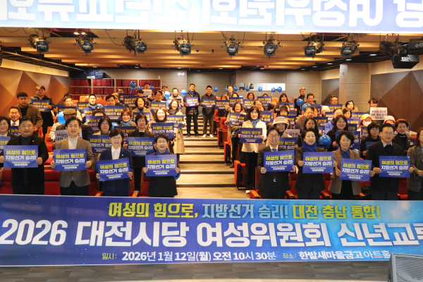 [충청뉴스 김용우 기자] 더불어민주당 대전시당 여성위원회가 12일 새마을금고 강당에서 ‘2026년 신년교류회’를 개최하고, 다가오는 지방선거 승리와 지역 통합을 위한 여성 당원들의 결속을 다졌다.