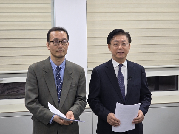 강재구·맹수석 출마예정자는 15일 대전시의회 기자실에서 기자회견을 열고 행정통합 과정에서 교육분야가 예외가 될 수 없다고 주장했다.