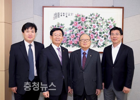 ▲ 왼쪽부터 송우용 교무처장, 이원묵 총장, 강용식 초대총장, 송복섭 기획홍보처장