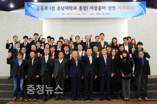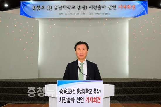 송용호 前 충남대 총장이 15일 오후 2시 대전 오페라 웨딩홀 4층 컨벤션홀에서 내년 대전시장출마 기자회견을 열었다.