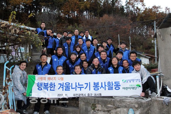 한국수력원자력(주)중앙연구원(원장 이종호)은 19일 초록우산 어린이재단 대전지역본부(본부장 최명옥)와 함께 추운 겨울날 경제적 어려움으로 인해 월동준비를 하지 못한 대전 관내 빈곤가정 6세대를 방문해 연탄 4,000장, 쌀 300kg 및 난방유 등을 전달하는 ‘행복한 겨울나누기’ 자원봉사활동을 펼쳤다.