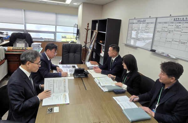 시 방문단은 이날 농축산국 방문을 시작으로 환경산림국, 보건복지국, 산업경제실 등 4개 실·국을 차례로 찾아 △은지·상동지구 배수개선사업 △고병원성 AI 살처분 비용 지원 △고정식 악취포집기 보급 및 악취방지시설 설치 지원 △전기승용차 지방비 단가 조정 △탄소중립 기반 조성 △2027 빵빵데이 천안 축제 지원 △신재생에너지 관련 사업 등 총 7건에 대해 협의했다.