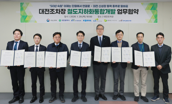 유득원 대전시 행정부시장은 “이번 업무협약은 철도지하화를 넘어 대전의 산업과 도시 미래를 함께 설계하는 출발점”이라며 “기관 간 협력을 바탕으로 대전조차장이 기술과 사람이 모이는 새로운 성장 거점으로 거듭날 수 있도록 추진해 나가겠다”라고 밝혔다.