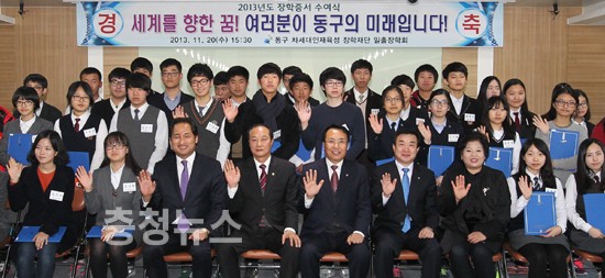 한편, 차세대인재육성장학재단은 동구청과 정창근 명예이사장의 주도로 2008년 7월 설립된 후 지역주민과 기업가 등의 후원금으로 2009년부터 매년 45명을 선발해 5000만원의 장학금을 지급했으며, 올해는 상반기 7명을 포함해 총 50명에게 5100만원을 지급했다.